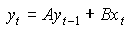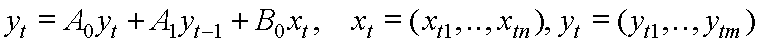 n=2, A0=0, B0=0, (y1,y2)=(x,y): x[t] = a x[t-1] + b y[t-1] y[t] = c x[t-1] + d y[t-1]Probleme: